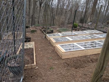 Visits to historic gardens had us wanting to do coldframes so holding onto the old house windows paid off. The windows are really kind of a "pane" right now. Will do a design change for the new season. The wood for the beds came from removing a wall and the windows were from replacing the windows on the house