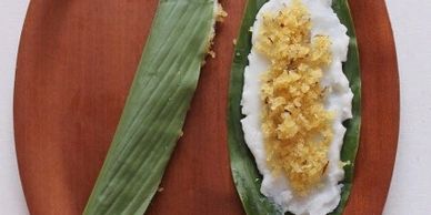 The smell of turmeric leaves while the patolli with rice flour get steamed is divine. The flavor of turmeric leaves gets seeped into the rice flour while steaming and enhances the taste of patoli. Hence there is no other alternative to turmeric leaves for making patoli.